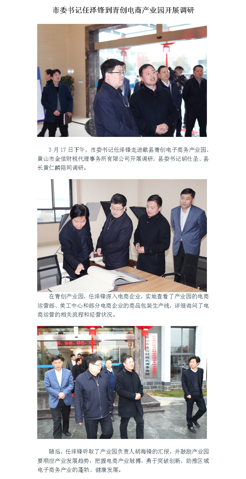 市委書記任澤鋒到歙縣電商產業園開展調研