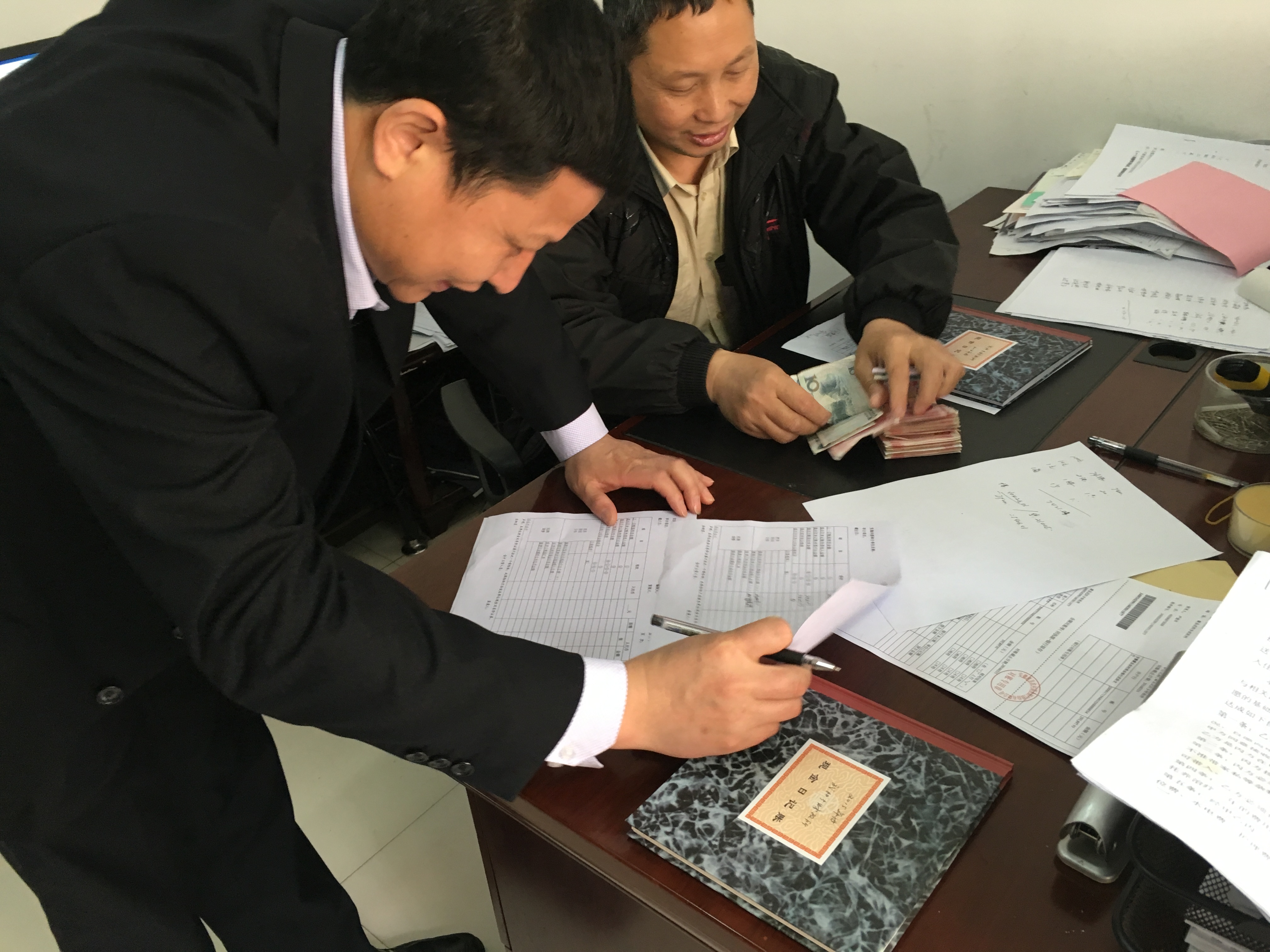 △審計組人員進行現金監盤(左為審計組人員,右出納吳夢華)