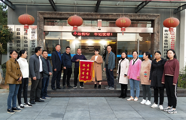 2019年10月28日,休寧縣五五零五農(nóng)業(yè)科技有限公司總經(jīng)理陳旭輝帶著“專業(yè)專注、放心省心”標(biāo)語的錦旗來到我金信財稅公司,對我公司為其指導(dǎo)財稅管理、建立賬務(wù)的保姆式服務(wù)及服務(wù)會計楊鳳琴表示感激之情。當(dāng)日,總經(jīng)理胡海鋒,副總經(jīng)理汪銘及相關(guān)部門負(fù)責(zé)人一同接受錦旗。