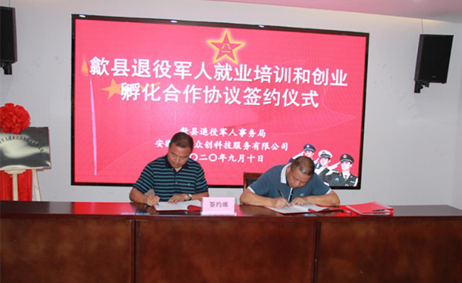 揭牌儀式結(jié)束后,市縣退役軍人事務(wù)局還分別與安徽香寧眾創(chuàng)科技服務(wù)有限公司簽訂了《退役士兵及就業(yè)培訓(xùn)與創(chuàng)業(yè)孵化合作協(xié)議》,以此加強(qiáng)退役軍人職業(yè)教育和技能培訓(xùn)方面的合作,提高退役軍人就業(yè)能力,促進(jìn)退役軍人學(xué)以致用,助力退役軍人實現(xiàn)更好就業(yè)創(chuàng)業(yè)。