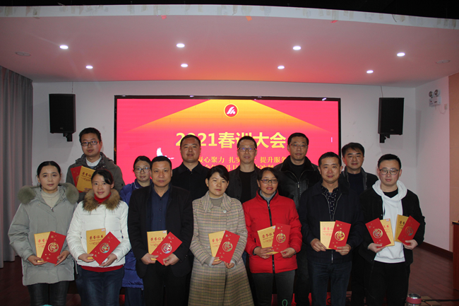 2021年2月26日,中心召開2021年度全體職工春訓大會,會議首先對2020年度優秀班組和個人進行表彰,以鼓勵他們在企業服務、中心發展方面做出的巨大貢獻。財稅服務二組、項目發展部獲得“優秀班組獎”,李霞娟、曾笑青獲得“優秀經理(組長)獎”,楊鳳琴、胡武星、柯淼、王衛兵、李思凱等5人獲得“優秀員工獎”。中心主任胡海鋒、副主任汪銘為優秀班組和個人頒發獎狀和獎金。