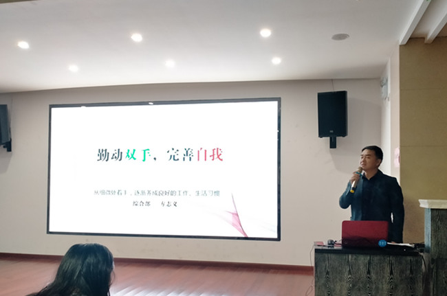 方志義經理有著多年的從軍經歷,平日工作細致嚴謹,在團隊管理方面有著豐富的經驗。此次分享他主要從員工日常工作、生活中的細微之處著手,從車輛???、工位整理、衛生保潔等方面進行詳細講解,并倡導每一位員工對規章制度要有敬畏之心,對領導和前輩要有尊崇之情,對同事要有互幫互助之誼,對賴以成長的平臺應心懷感恩,從細微處著手,逐漸養成良好的工作、生活習慣。最后,中心副主任汪銘對此次分享作出了肯定和贊揚,并要求每一位員工要做到“讓優秀成為一種習慣”,提升自我,并更好的服務客戶。