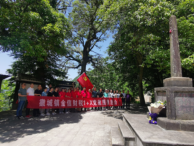 當日,黨員隊伍從歙縣出發,經過一個小時的盤山公路到達杞梓里鎮金竹村。在革命烈士紀念碑前,當地村長深情講述了烈士紀念碑下九名烈士的英勇事跡,在場黨員聽后被斗爭年代黨員無私奉獻、不惜犧牲生命的精神所感動,也深感今日幸福生活來之不易。