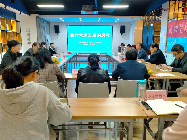 2021年10月20日,歙縣招商投資服務(wù)中心、金信財稅公司以“會計未來發(fā)展的思考”為題,邀請來我縣投資發(fā)展的臺灣客商林銘村博士一行,江蘇華瑞會計師事務(wù)所有限公司董事長、注冊會計師王德瑞先生及其技術(shù)團隊展開座談,探索分析企業(yè)財稅服務(wù)發(fā)展的趨勢、不同發(fā)展階段的需求以及如何提升專業(yè)水平和能力,更好的為企業(yè)提供服務(wù)。歙縣招商投資服務(wù)中心、金信財稅公司總經(jīng)理胡海鋒、副總經(jīng)理汪銘及各部門負責人參加座談。