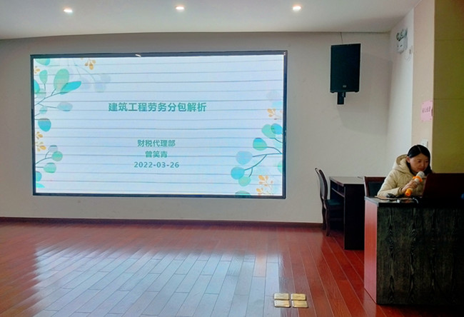 曾笑青副經(jīng)理是一名中級會計(jì)師,在財(cái)稅代理方面有著豐富的工作經(jīng)驗(yàn),工作中她謹(jǐn)小慎微,一絲不茍,井井有條。此次分享她主要圍繞“建筑工程勞務(wù)分包”這一主題,對從事建筑活動(dòng)企業(yè)的要求、建筑工程承包的相關(guān)要求、施工勞務(wù)資質(zhì)的備案辦理、以及勞務(wù)分包的計(jì)稅方法等方面進(jìn)行詳細(xì)講解。經(jīng)過曾笑青的用心介紹,使得參與人員對“建筑工程勞務(wù)分包”的業(yè)務(wù)有了更全面、深入的了解,拓展了企業(yè)負(fù)責(zé)人和財(cái)務(wù)人員的專業(yè)知識面,有助于提升服務(wù)水平,促進(jìn)對口業(yè)務(wù)的規(guī)范管理。