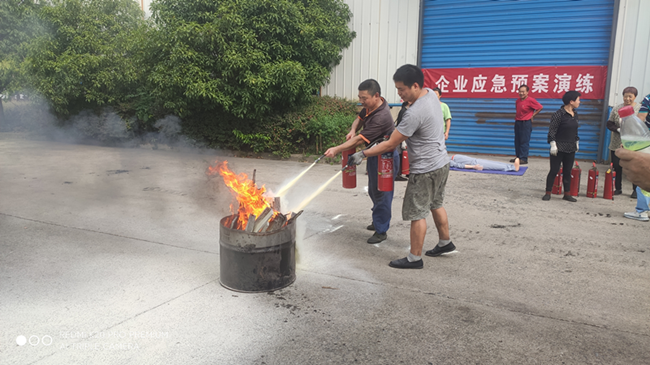 在演練現場,我公司注冊安全工程師吳智勇從應急演練的目的和意義,人員分工和職責,事故報告和處置等方面進行宣傳和闡述,并講解滅火器的使用方法。當日,模擬車間某處發(fā)生火警,立即啟動應急預案,公司負責人黃某擔任現場指揮,按照預案程序和分工開展應急救援,車間現場人員就近展開消防自救。通過生產現場員工及時撲救,火警得到有效處置。演練中,尤其注意讓女員工學會事故報告,學會開啟、使用滅火器,撲救初起火災,做到“打早、打小、打了”,增強員工消防自救的應急處置能力。