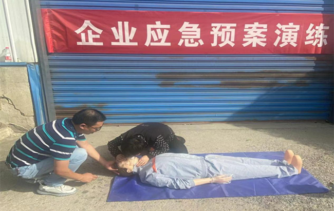 觸電急救專項處置方案演練中,通過人體模型教會員工心肺復蘇的辦法,并模擬員工觸電受傷場面,撥打120急救電話,同時企業(yè)救護組成員對休克的員工進行心肺復蘇,通過及時有效的急救,在救護車來到前幫助受傷人員恢復自主呼吸,從而挽救受傷員工的生命。