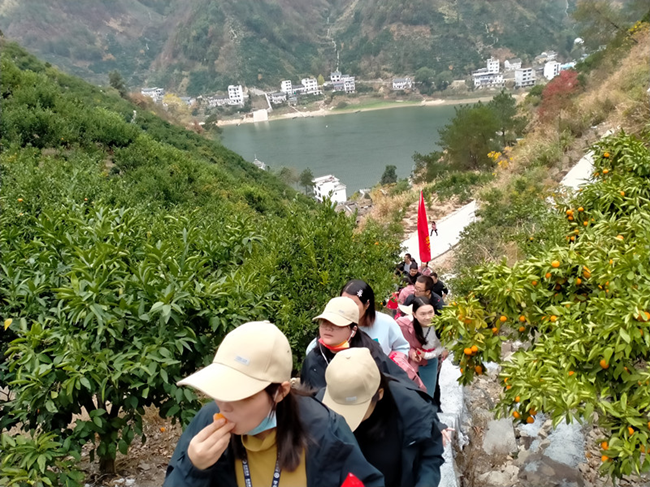 隨后團隊返回我縣新溪口,品嘗農家樂,沿著登山步道欣賞新安江畔的桔園秋色,品嘗最新鮮的蜜桔酸甜味道??吹酱T果累累的圖景,也讓我們不禁想到桔農養護、灌溉的辛苦,艱辛的付出才換來如今的收獲。