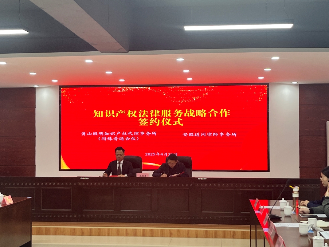 當日,黃山本土專利代理機構(gòu)組織召開“共話未來趨勢 共謀發(fā)展機遇”交流座談會,金信集團所屬的專利代理機構(gòu)徽明事務(wù)所所長胡海鋒與道同律師事務(wù)所管委會主任洪徽各自介紹本土知識產(chǎn)權(quán)業(yè)務(wù)情況和未來發(fā)展規(guī)劃,并現(xiàn)場簽訂戰(zhàn)略合作協(xié)議。